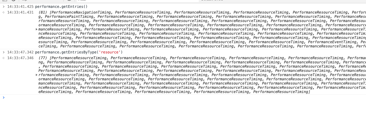 - performance.getEntries() 会获取页面加载资源和网络请求信息