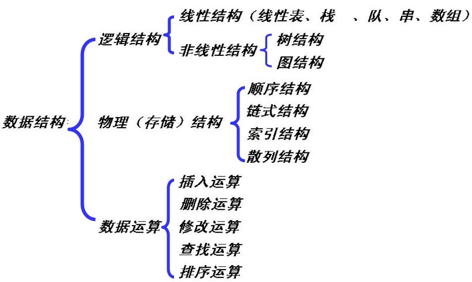 数据结构是指相互之间存在着一种或多种关系的数据元素的集合和该集合中数据元素之间的关系组成;数据结构的基本操作的设置的最重要的准则是,实现应用程序与存储结构的独立(数据结构=数据的存储+算法)