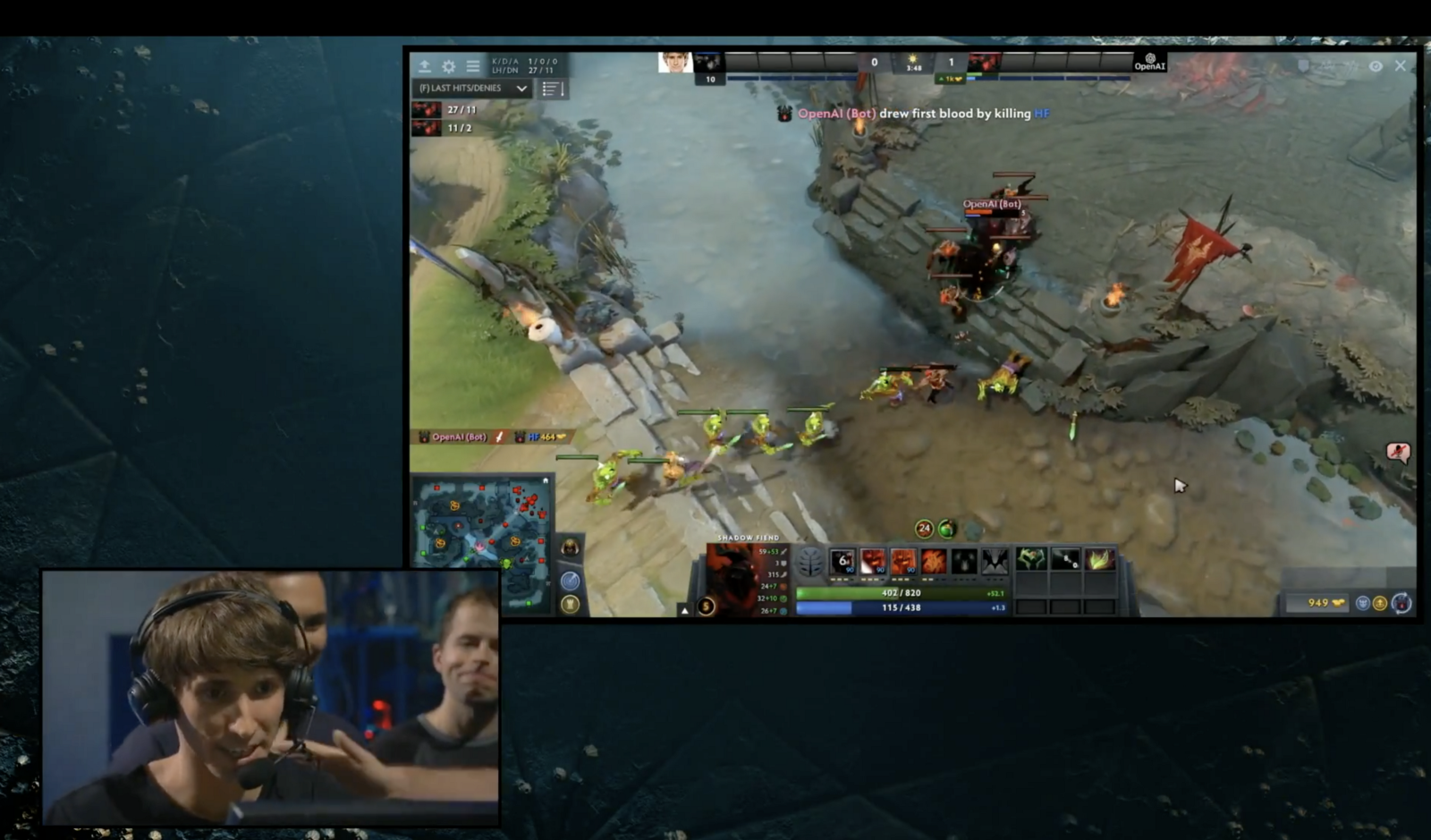 在 YouTube 上查看 TI2017 的完整比赛,由 Dendi(人类)对战 OpenAI(机器)。