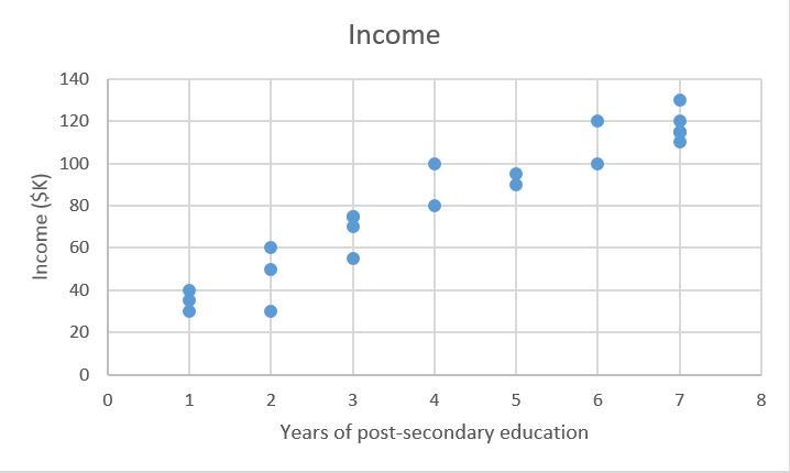 为了展示监督学习的工作原理,让我们看一个问题,根据某人完成的高等教育的年数,来预测年收入。更形式化来说,我们打算构建一个模型,它近似描述了高等教育年数X和对应年收入Y的关系f。