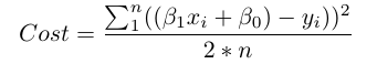 n为观察值的的数量。使用2 * n来代替n,在求导来使损失最小时,使我们的式子更加整洁,虽然一些统计学家认为这是这种亵渎。当你开始对这种东西有意见的时候,你就太偏执了。
