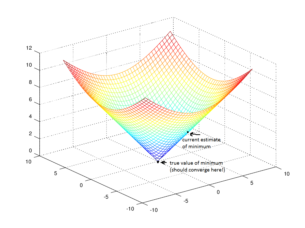 一个可行的办法是,触摸你周围的地面,向地面下降最快的方向移动。走出一步,之后不断重复相同的过程,直到地面变成平的。之后你就知道了你到达了山谷的底部。如果你在所在位置向任何方向移动,你最终都会位于相同的高度,或者更高。
