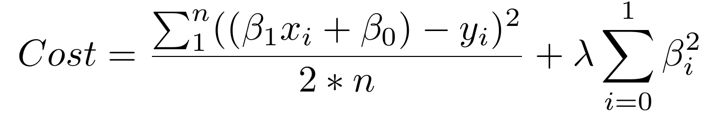 上面的和式的第一部分是正常的损失函数。第二部分就是正则项,为较大的β系数添加惩罚,它将过大的解释性权重给予任何特定的特征。同时使用这两个元素,成本函数现在平衡了两个优先级:解释训练数据,并防止解释过于特定。