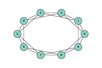 注意,make_ring_lattice使用地板除计算halfk,所以如果k是奇数,它将向下取整并产生具有度k-1的环格。这可能不是我们想要的,但现在还不错。