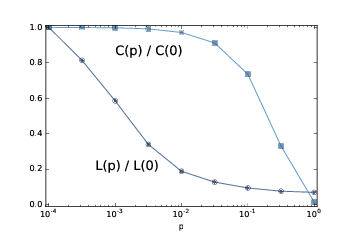 Watts 和 Strogatz 发现,较小的p值产生高群聚性的图,如正则图,短路径长度的图,如随机图。