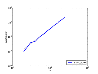 在图 a.3 中,斜率 2 的线拟合了数据,所以sum实现是二次的。