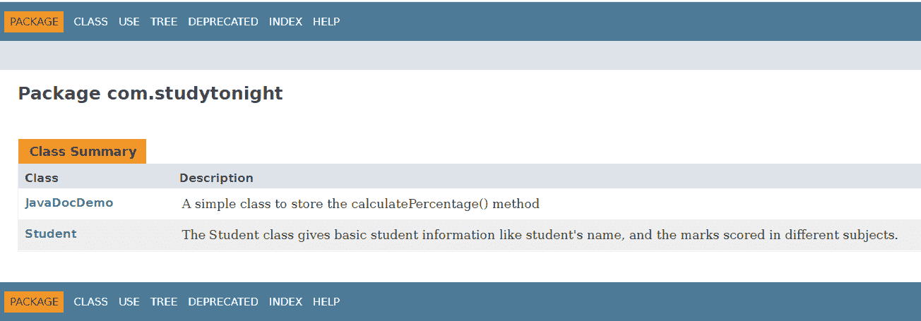 我们需要指定我们想要文档的类或包。使用-d标志指定您想要创建文档文件的位置。