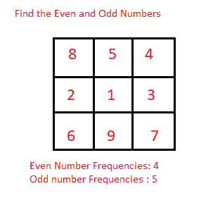 在下面的程序中,我们将看到当值被预定义时,如何计算给定矩阵中奇数和偶数的频率。