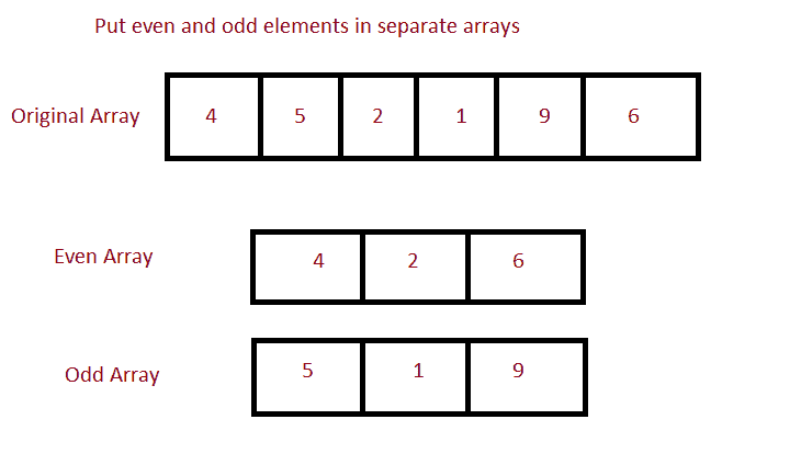 //Method to put even and odd elements in different arrays
