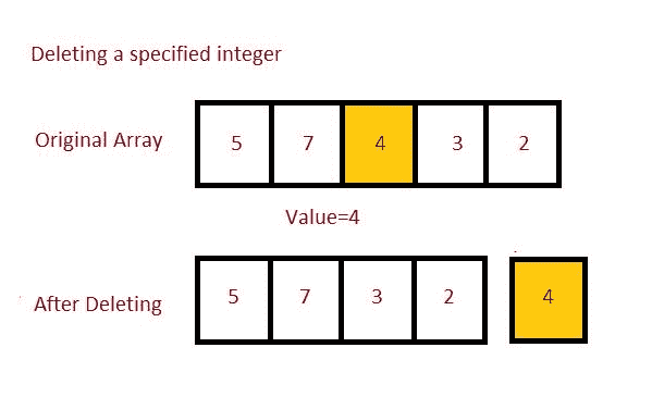 下面的程序演示了如何通过遍历所有元素从数组中删除特定元素。