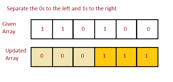 下面的程序演示了如何使用排序技术将数组左侧的 0 和右侧的 1 分开。