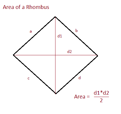 System.out.println("Area of rhombus = "+ (d1 * d2) / 2);
