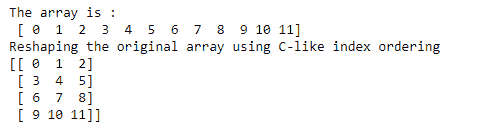 print("\n The reshaped array with 2 rows and 6 columns : \n", a1)