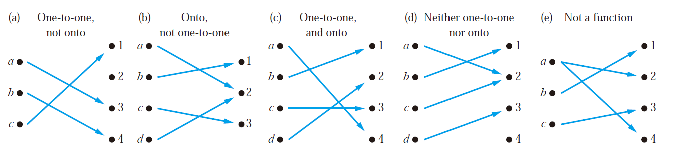 The function f is a one-to-one correspondence(一一对应), or a bijection(双射), if it is both one-to-one and onto