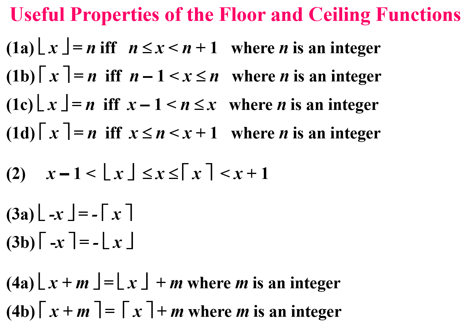 The floor function f (x) is the largest integer less than or equal to the real number x