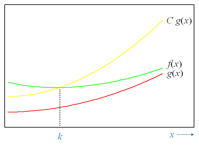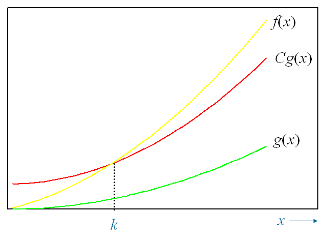 “f(x) is O(g(x))” if there are constants C and k such that |f(x)| ≤ C| g(x)| whenever x > k.