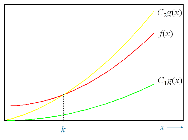 $f(x)$ is $\Theta(g(x))$ when there are real numbers $C_1$ and $C_2$ and a positive real number k such that