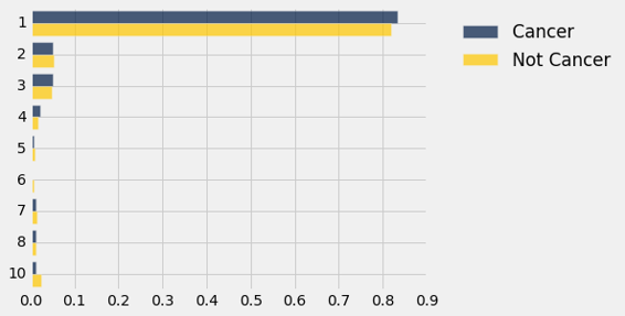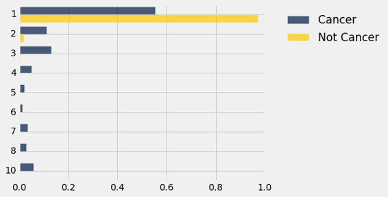 'Class Label', make_array('Not Cancer', 'Cancer')