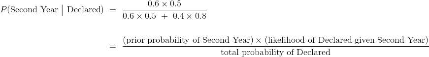 后验概率。这些是考虑专业声明状态的信息后,二年级的概率。我们计算了其中的一个: