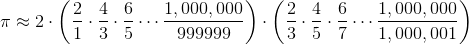 [1] 令人惊讶的是,当我们将无限多个分数相加时,顺序可能很重要。但是我们对 π 的近似只使用了大量的数量有限的分数,所以可以按照任何方便的顺序,将这些项相加。