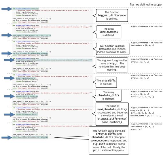 理解 Python 执行函数的步骤是有帮助的。 为了方便起见,我们在下面的同一个单元格中放入了函数定义和对这个函数的调用。