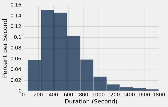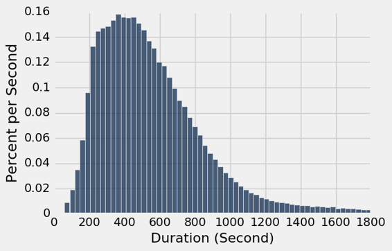 有人从 Folsom 的二号车站骑到 Beale at Market,距离大约五个街区,非常快(271 秒,约 4.5 分钟)。 2nd Avenue 和 Almaden 的 Adobe 之间没有自行车行程,因为后者在不同的城市。