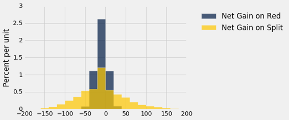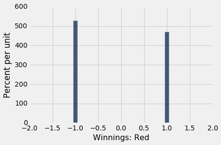 使用我们的几率长期行为的新知识,让我们探索赌博游戏。我们将模拟轮盘赌,它在拉斯维加斯和蒙特卡洛等赌场中受欢迎。