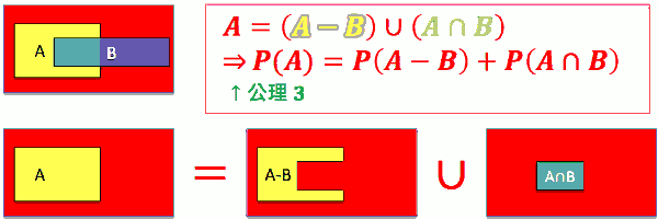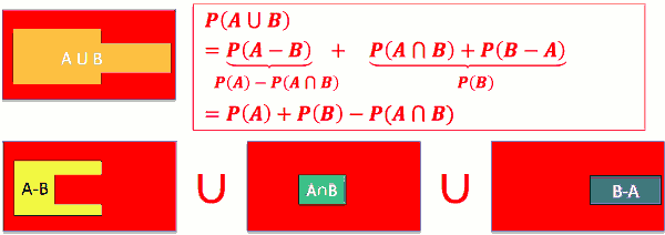 - P(A) = P(A-B) + P(A∩B)