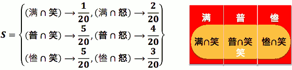 - Ex: 阿宅心仪某可爱女店员。她的笑容打开了他封 闭的心。阿宅注意到她笑容会受生意的影响,于是 每天忠实记录该店生意与她有无对他笑。店生意有 满、普、惨三态,而她有笑、怒二态。根据记录: