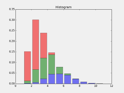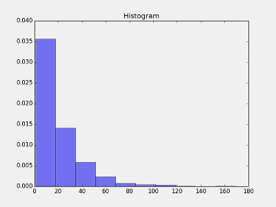 p1.hist( interval , normed=1, facecolor='blue', alpha=0.5)