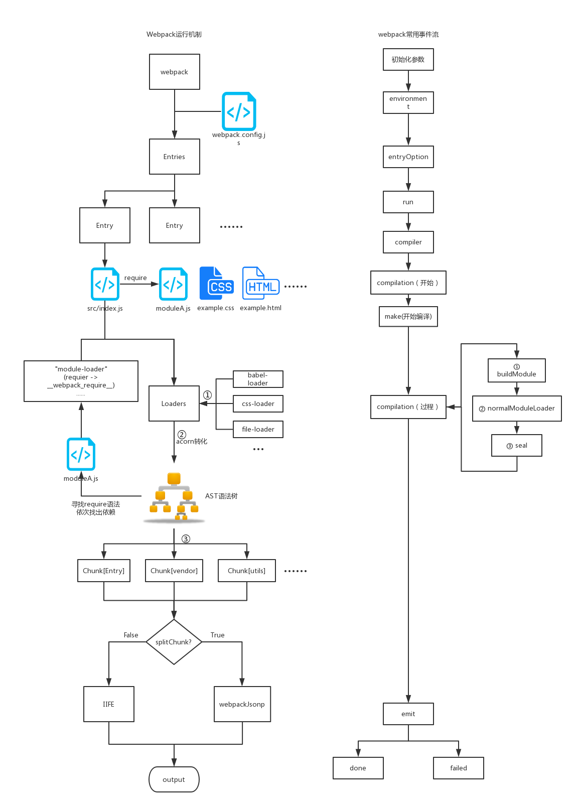 - webpack 先解析成字符串 然后字符串解析成 AST(静态语法分析树) (acorn)
